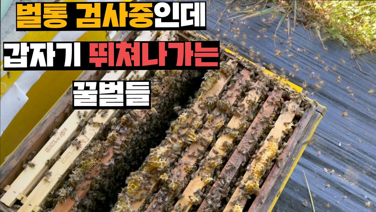 벌통 열어서 내부 점검중인데 갑자기 흥분해서 집나가버리는 꿀벌세력(1영상 3분봉)