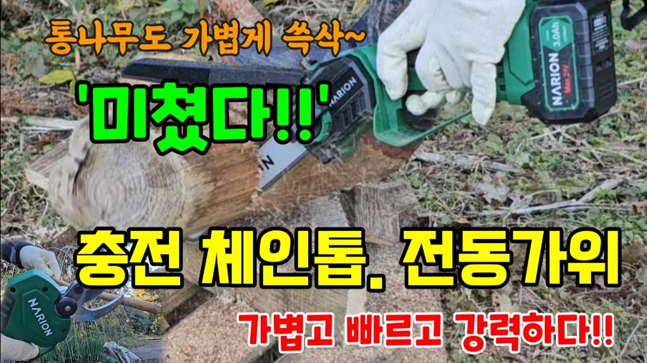 ☆이벤트☆전기톱 전지가위 성능이 이렇다고? 통나무를 통째로 잘라보니.. 나리온 20cm 전기톱, 40mm 전…