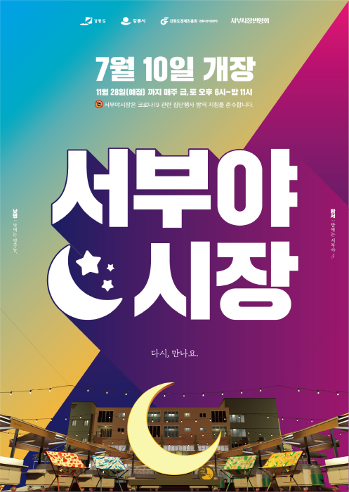 강릉 서부야시장 2020 페이지 정보 작성자 하우팜 작성일 20-06-29 05:37 조회 1,100회 댓글 0건 본문 행사문의처033-640-5535(강릉시 일자리경제과) 행사장소강원도 강릉시 임영로155번길 6 행사기간2020.07.10 ~ 2020.11.28 페이스북 공유 트위터 공유 강릉 서부야시장 2020